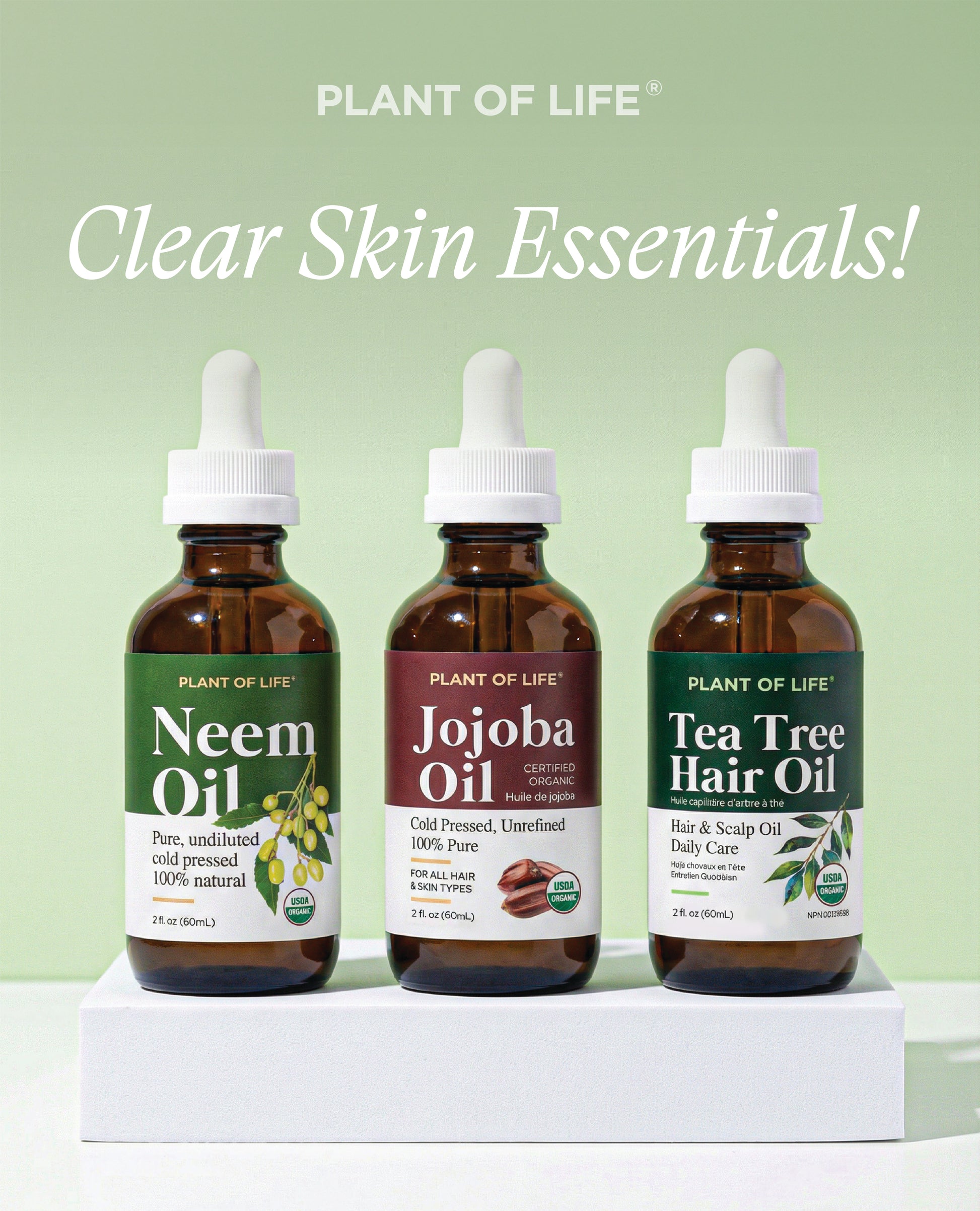 Nature’s Answer to Clear Confidence. Say goodbye to harsh breakouts and hello to a balanced, radiant complexion. Our Clear Skin Essentials kit uses the antibacterial strength of Tea Tree and Neem to target impurities at the source, while Jojoba oil mimics your skin's natural sebum to hydrate without clogging pores. Pure, potent, and perfect for a toxic-free glow